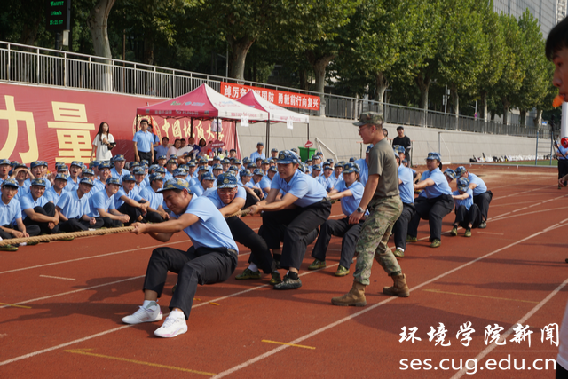 “环境学院!”“加油!”随着整齐的加油声,环境学院拔河代表们精神抖擞,俯下身子,拿起大绳,身体后压,为拔河比赛做好准备。响亮的哨声响起,拔河比赛正式开始,拔河代表们卯足了力气,憋红了脸,拼尽全力完成比赛。在一次次集体活动中,同学们更加体会到团队的力量,不仅增进了情感,更让同学们学会合作。