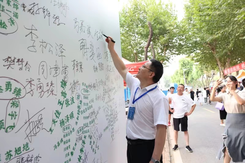 新生在欢迎展板上签名并拍照留念
