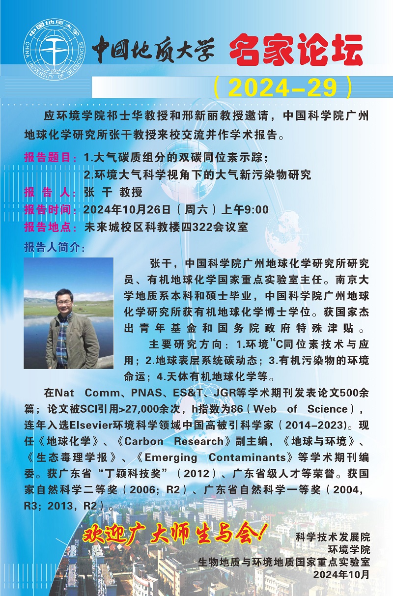 中国科学院广州地球化学研究所张干教授做客“名家论坛”