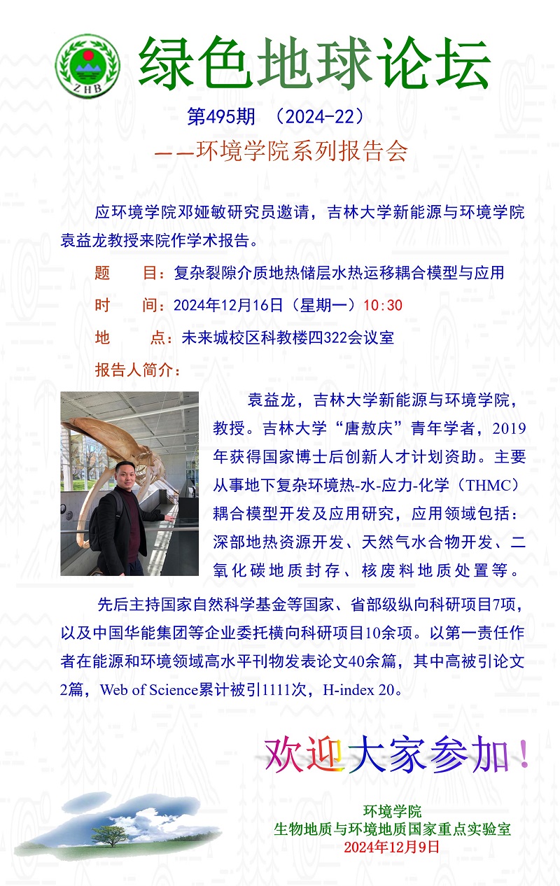 吉林大学新能源与环境学院袁益龙教授学术报告
