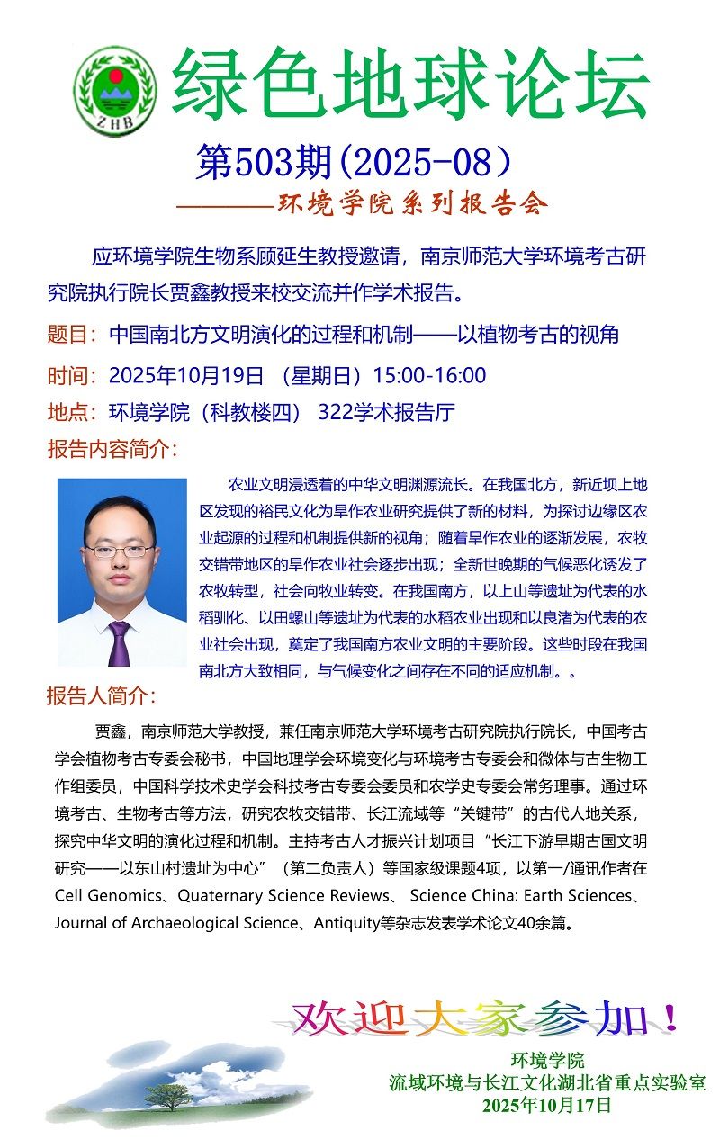 南京师范大学环境考古研究院执行院长贾鑫教授学术报告