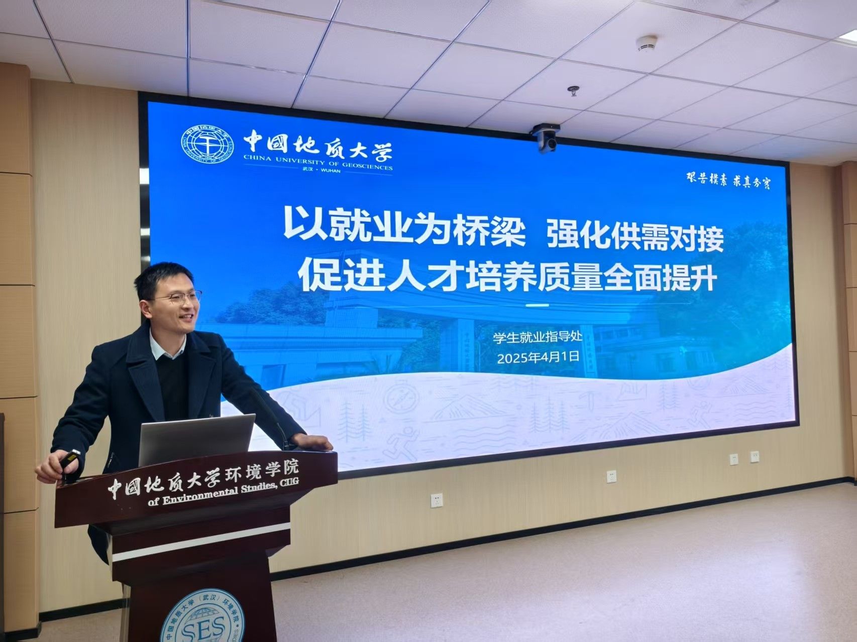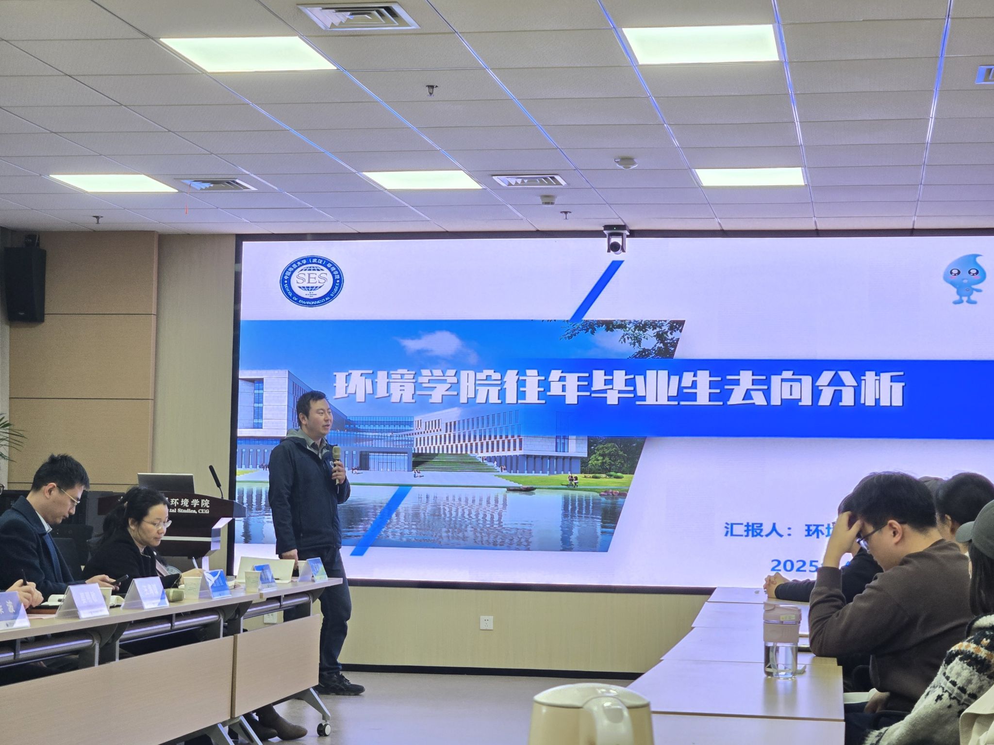 通讯员江惟缌 摄影曾建光、孙泽华、张学海 编辑王孟雪) 4月1日下午,环境学院2025年第1期“小E有约”院领导接待日暨学生就业工作专题交流会在科教楼四322报告厅举行。校学生就业指导处就业服务管理中心主任孟国强,学院党委书记姜明敏,副院长柴波、党委副书记王海锋,环境科学与工程系主任邢新丽、大气科学系党支部书记孔少飞、科技创新中心党支部书记黄维雄、水资源与水文地质系曾斌、生物科学与技术系蒋永光、实验教学中心梁莉莉、学工组辅导员以及学生代表参加。王海锋主持活动。