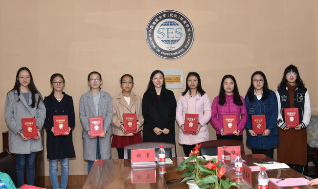 (通讯员李艳、王碧 摄影张学海、徐勇 编辑张学海)11月17日上午,首届宇驰学术卓越奖学金颁奖典礼在文华楼201举行。深圳市宇驰检测技术股份有限公司董事长何姝、武汉市宇驰检测有限公司总经理助理肖莹,我校党委书记何光彩,环境学院党委书记李素矿,院长马腾,副院长甘义群,院党委副书记朱继,院团委书记杨雪,辅导员孟国强、李平,获奖学生参加典礼。李素矿主持颁奖典礼。