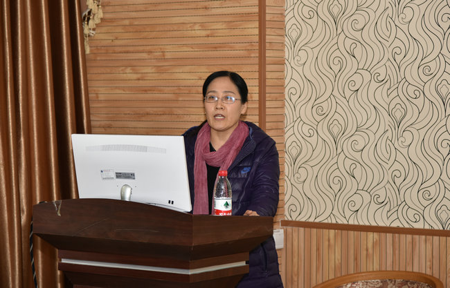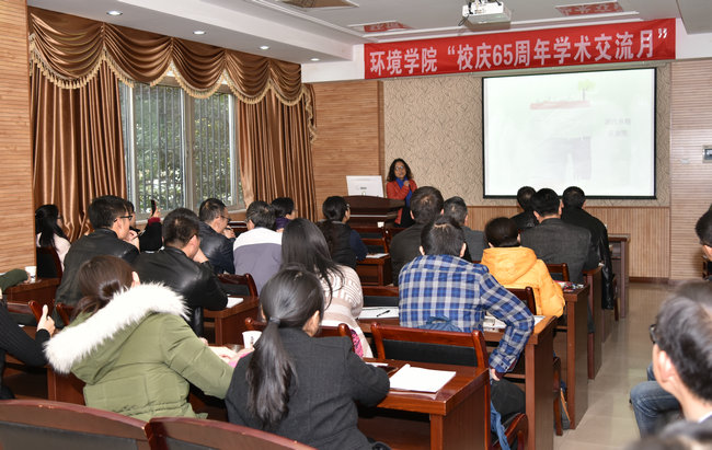 王红梅副院长介绍了学院“校庆65周年学术交流月”活动基本情况,并做了《鄂西洞穴系统地质微生物的时空分布及其古环境意义》的学术报告。
