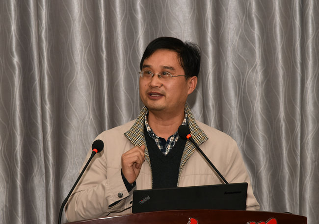 学校工会副主席高复阳讲话,并宣读校工会《关于同意环境学院召开第三届教职工大会第一次会议暨第三届工会会员大会第一次会议的批复》。