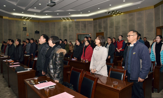 (环境学院张学海 张锦)2018年1月4日下午在学校八角楼,环境学院召开第三届教职工大会第一次会议暨第三届工会会员大会第一次会议。会议的主题是“知行十九大精神,促进学院内涵发展”。学校工会副主席高复阳,环境学院党政领导班子成员、环境学院党委委员,环境学院全体教职工和工会委员,各系、室(中心)工会组长等参加了大会。