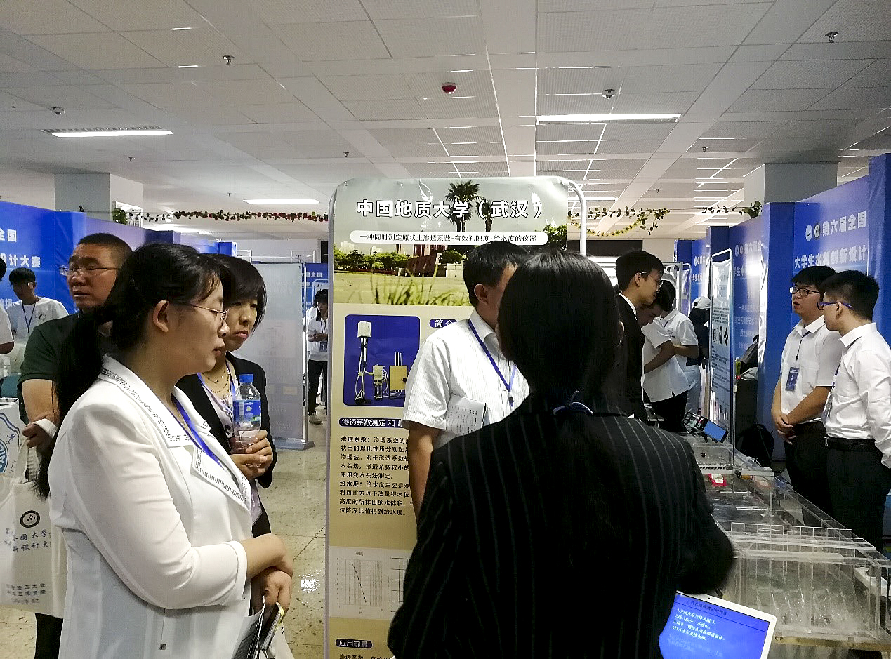环境学院选送三支代表队代表我校参赛。通过作品演示、分组答辩、答辩复赛等环节,邱洋、邓芳、樊佩宽和史秋云设计制作的作品《一种同时测定原状土渗透系数、有效孔隙度和给水度的仪器》(指导教师:潘欢迎、马传明)获一等奖,杨晨博、张心阳、覃霄、杨安琪和陈宇龙设计制作的作品《一种全自动雨水综合利用系统》(指导老师:马传明 潘欢迎)获二等奖,王懿洁、栗倩倩、郑智、于茂君和张蝶设计制作的作品《基于物联网大数据平台的岩溶隧道水文预报系统的研发及应用》(指导教师:马传明、潘欢迎)获三等奖。