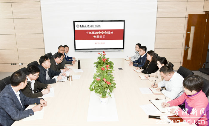 (通讯员张学海 左麦枝 摄影、编辑张学海)2019年11月6日上午在科教四楼308室,环境学院召开党委理论学习中心组扩大会,专题学习十九届四中全会精神和审议通过的《中共中央关于坚持和完善中国特色社会主义制度、推进国家治理体系和治理能力现代化若干重大问题的决定》。