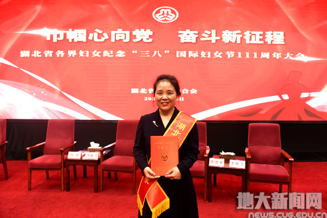 (严丽莎转自地大新闻网)(通讯员张学海 严丽莎)近日,湖北省各界妇女纪念“三八”国际妇女节111周年大会召开,我校环境学院二级教授、博士生导师王红梅获“湖北省三八红旗手”荣誉称号。三尺讲台守初心,四季耕耘育桃李,作为一名高校女教师,王红梅全力诠释着师者“传道授业解惑”的职责,谱写着新时代女性在教学、科研道路上砥砺前行的华丽篇章。