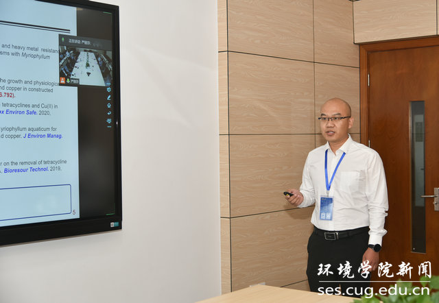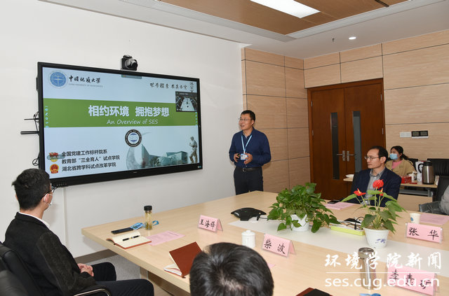 副院长柴波向参加第六届国际青年学者地大论坛环境分论坛的国际青年学者介绍环境学院,副院长孙自永作环境学院科研平台介绍。