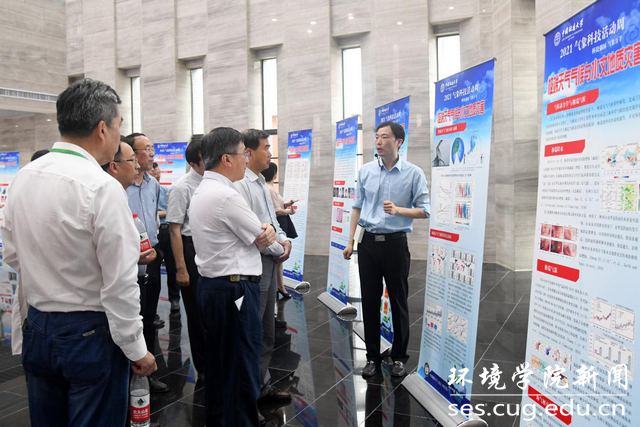 宇如聪一行来到科教六楼,参观局校合作地大大气科学发展成果展。大气科学系张仲石教授从院校发展、学科建设、科研方向及人才培养等方面汇报介绍了我校大气学科发展历程和取得的成果,得到了参观领导、嘉宾的大力肯定。