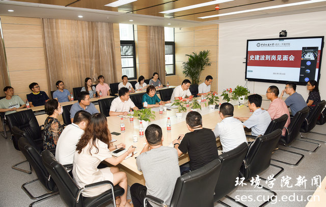 (通讯员陈俊男 左麦枝 编辑严丽莎 摄影张学海)2021年7月15日上午,环境学院新任院长史建波到岗见面会在科教楼四308会议室召开,会议采取线上线下同步进行。校党委常委、副校长刘杰,校党委组织部部长陈文武,学院党政领导班子成员、院党委委员、各系室(中心)负责人、教工党支部书记,教师代表、院办与学工组人员等参加线下会议,在野外教学科研实习的教职工线上参会。