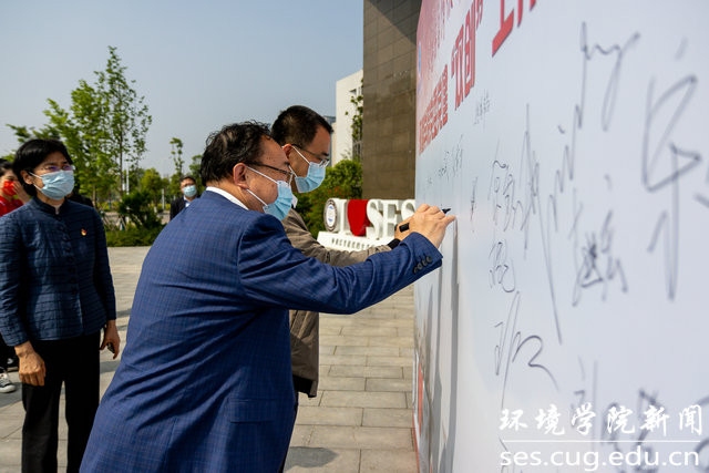 湖北省委教育工委专职副书记、省教育厅党组成员张幸平在“永葆赤子情怀、争做时代先锋”环境学院党委党建“双创”工作成果展签名。
