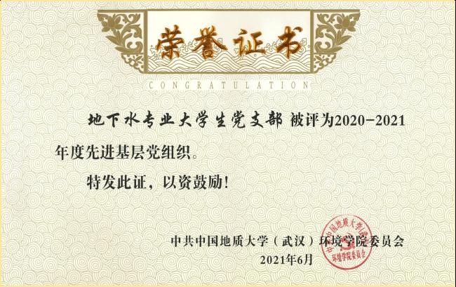 地下水专业大学生党支部被评为学院2020-2021年度先进基层党组织 |