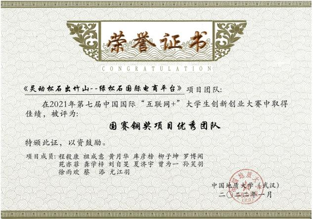 2021年第七届中国国际“互联网+”大学生创新创业大赛国际赛道国家级铜奖 |