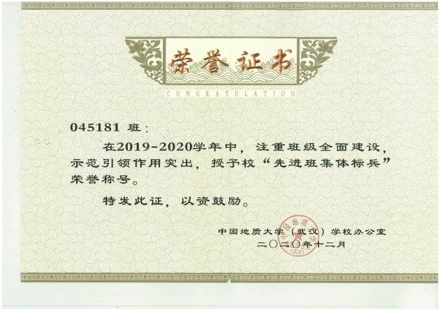2020年校级先进班集体标兵 |
