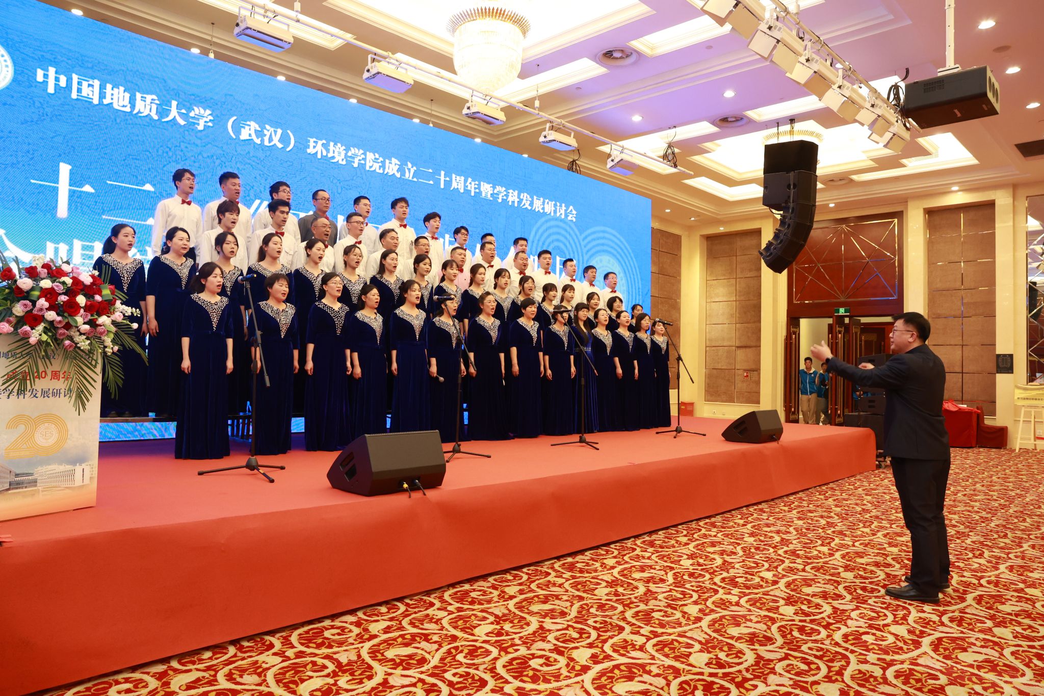 环境学院“红山雨师生合唱团”的师生献唱环境学院院歌《艰苦朴素 求真务实》。